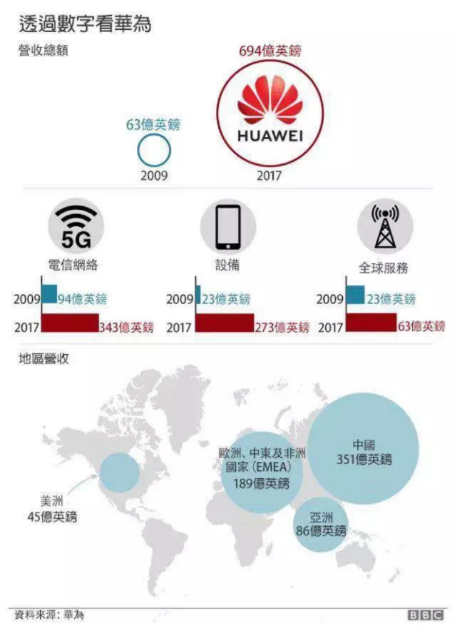 2018年,華為的營(yíng)收更是超過了1000億美元,成為在蘋果和三星之后,第三家邁入千億美元大關(guān)的電子公司!
