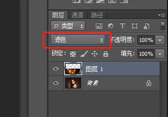 然后選中光斑圖片,將它的類型改變成“濾色”,這時(shí)候再來(lái)看看效果,很明顯光斑圖片已經(jīng)變得類似于透明的了。至于這里的不透明度,大家可以不用管它,因?yàn)楹竺婵梢酝ㄟ^(guò)色階來(lái)進(jìn)行改變。