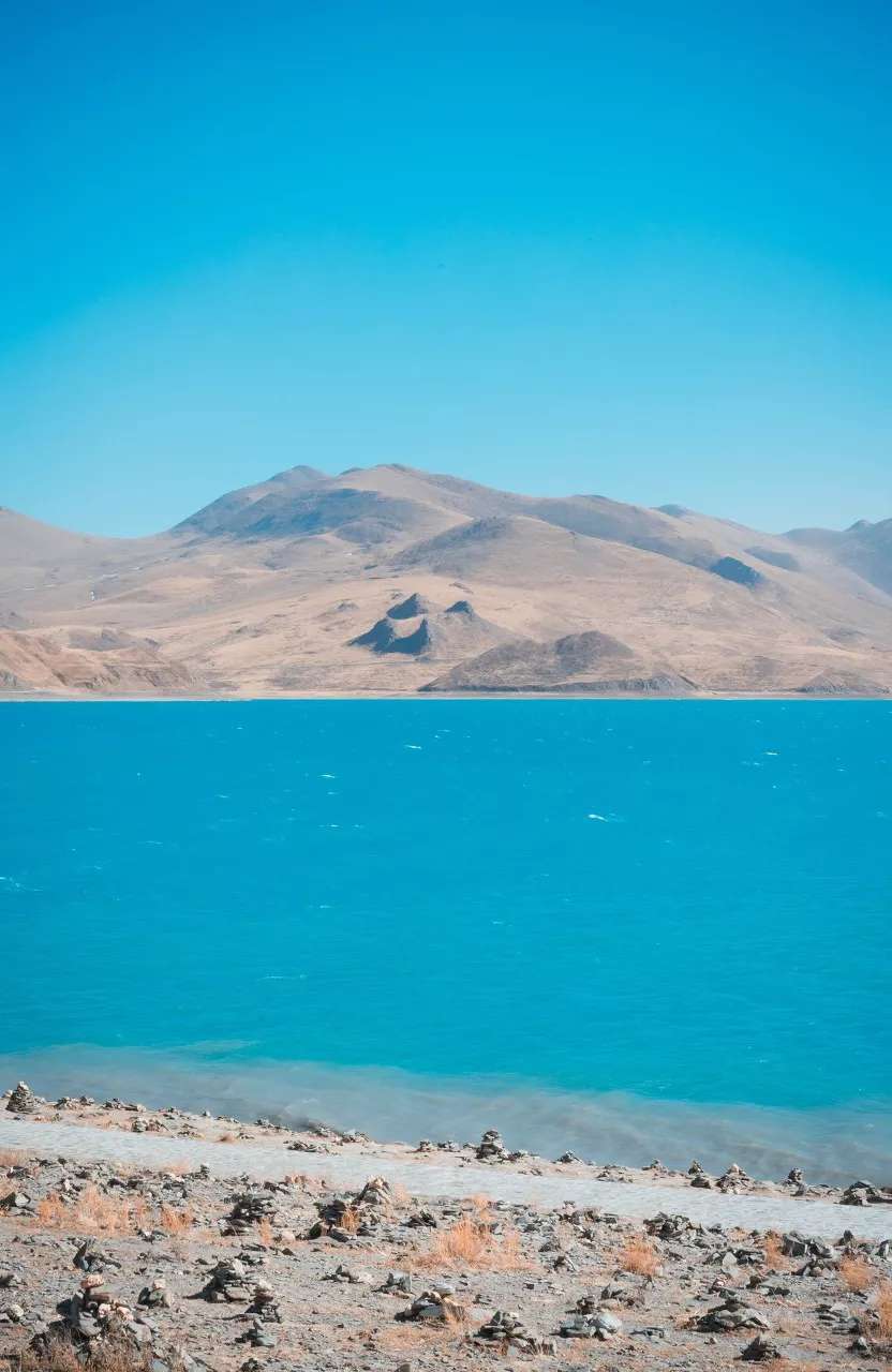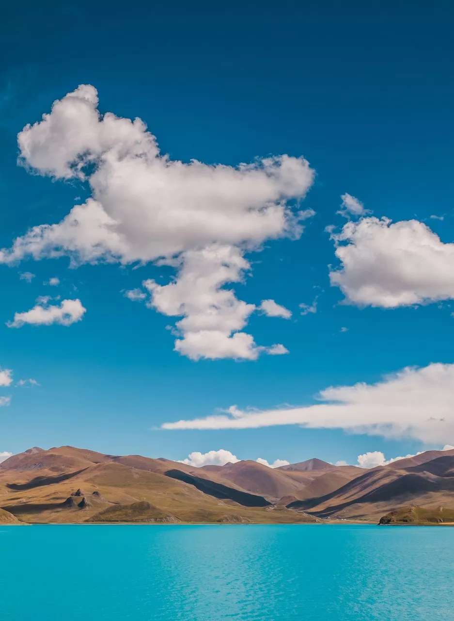 水面上的藍(lán)色不停地變幻,有時(shí)深,有時(shí)淺,整個(gè)羊湖就像一塊巨大的調(diào)色板,裝下了所有的藍(lán)色。