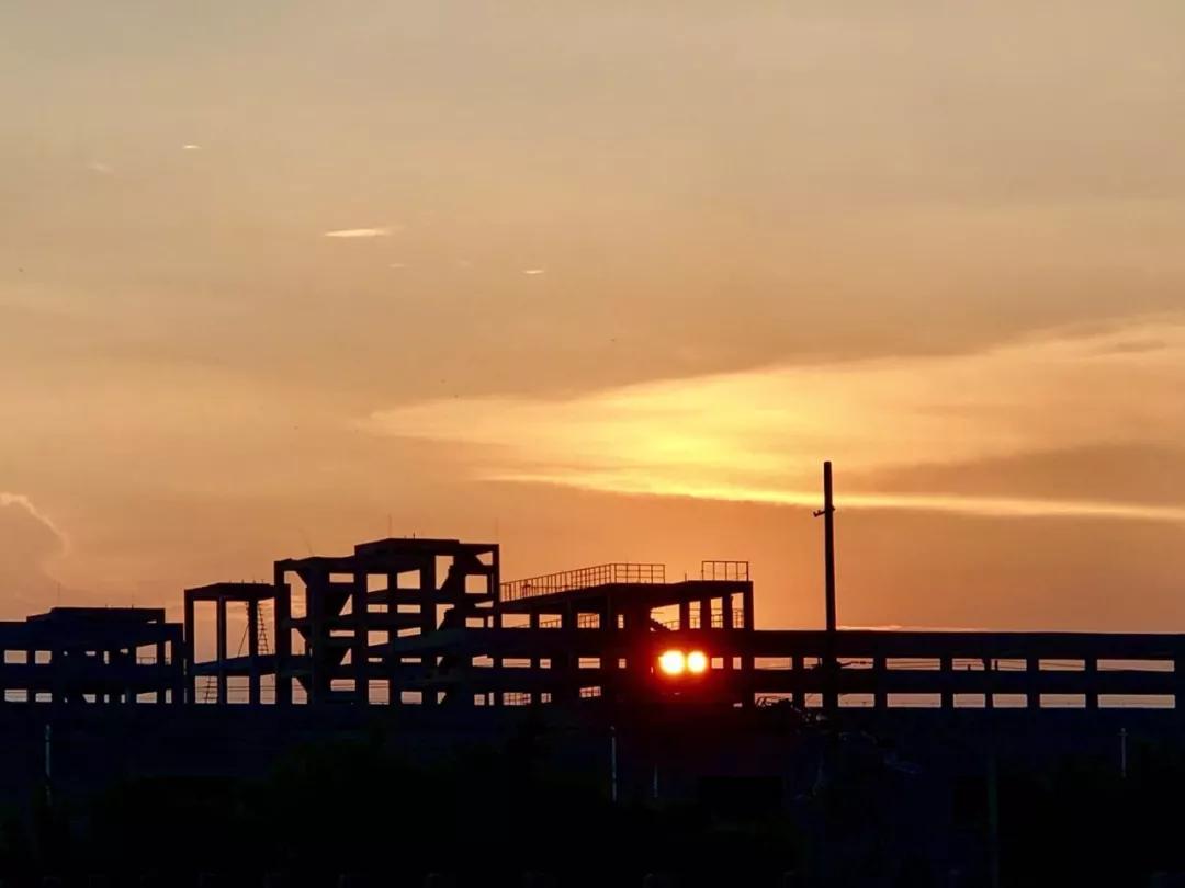 最后是建筑場地。進行逆光拍攝,正好將夕陽安排在還未建成的建筑物鏤空里,別有一番韻味。