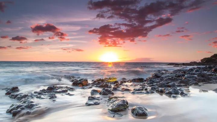 單純的拍風(fēng)光。夏季去海邊游玩的機會可能會更多,一望無際的大海,加上岸邊的石頭組合起來,會成為一張很不錯的夕陽圖片。