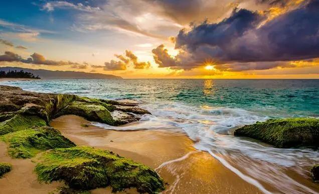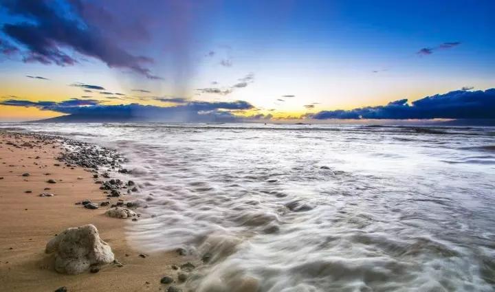 使用慢快門。想要拍出海水運動的動感,可以利用慢門進行拍攝,運動著的海水與靜止的沙灘、石頭形成一個很好的動靜對比效果。