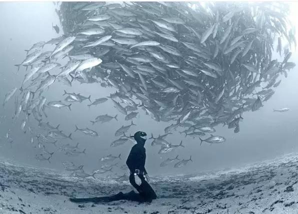 海底潛水,有幸看到成千上萬(wàn)只魚群聚集而來,這陣勢(shì)好像要吃掉這個(gè)異類一樣。