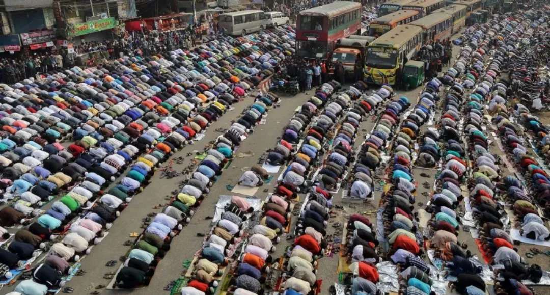 在伊教“全球盛會(huì)”期間,人們?cè)诿霞永瓏?guó)的達(dá)卡街道上祈禱?!叭蚴?huì)”(Bishwa Ijtema) 是每年在達(dá)卡舉行的主要宗教聚會(huì)之一,聚集了數(shù)百萬(wàn)信徒參加。專用的祈禱場(chǎng)地已經(jīng)不足以容納這么多人,所以很多人來(lái)到達(dá)卡的主要街道祈禱。在此期間,所有地面交通和行人都將暫停等待儀式結(jié)束。