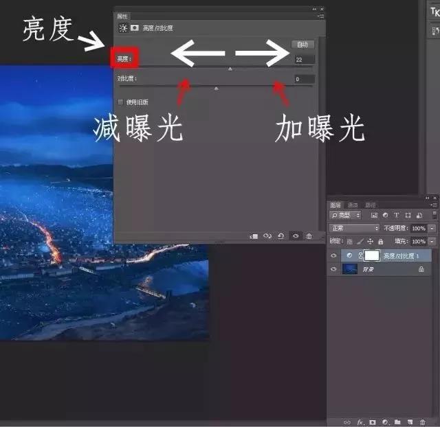 選擇“亮度/對比度”,就可以打開亮度/對比度調整界面了: