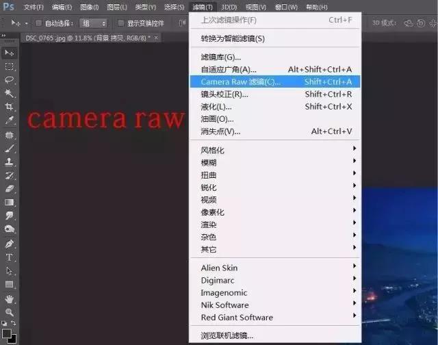 Photoshop CC 版本,就把原本只是在導入 raw 格式照片才會彈出來的 Camera Raw 插件變成了 jpg,tif 也可以適用的濾鏡。