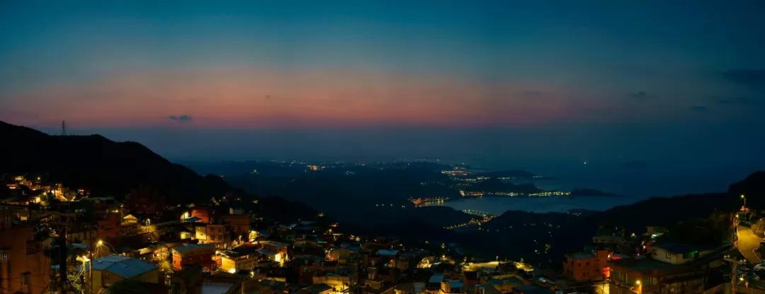 除了沿著巷子體會(huì)這獨(dú)一份的曲徑通幽之外,俯瞰視角的九份,也非常美,老街燈火盞盞,不遠(yuǎn)處的海面上漁火星星點(diǎn)點(diǎn)。