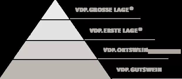 VDP酒莊使用著一套與德國官方葡萄酒分級同時存在,卻又完全獨(dú)立的分級系統(tǒng)。眾所周知,1971年頒布的德國官方葡萄酒分級以葡萄成熟度為標(biāo)準(zhǔn),但這個標(biāo)準(zhǔn)過于片面,難以區(qū)分酒的真實(shí)品質(zhì)。為了解決這個問題,VDP建立了聯(lián)盟內(nèi)部的分級制度,最新的分級制度更新于2012年,以勃艮第的風(fēng)土理念為出發(fā)點(diǎn):