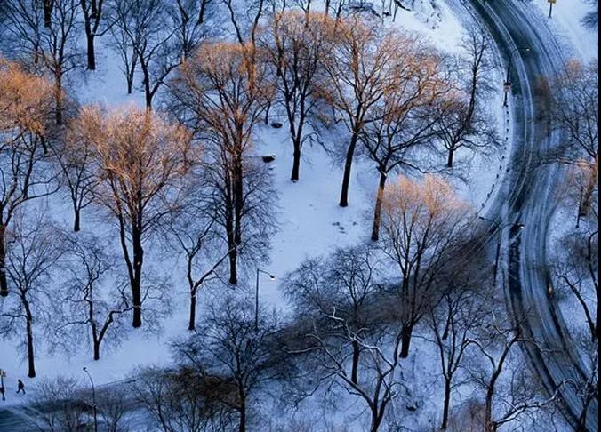冬季的照片天生就是冷色調(diào)的。白雪會反射天空的光線,在清晨或傍晚會呈現(xiàn)出紫色。在這幅雪景作品中,攝影師一直等到最后一縷陽光觸及樹梢時才按下快門,溫暖的落日余輝與冷紫色的雪景之間的對比令這張照片非常出彩。