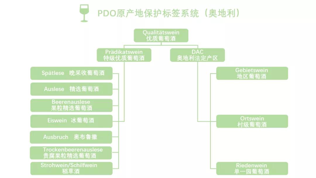 目前全奧地利4個(gè)大區(qū)下的17個(gè)子產(chǎn)區(qū)均獲準(zhǔn)釀造PDO葡萄酒。