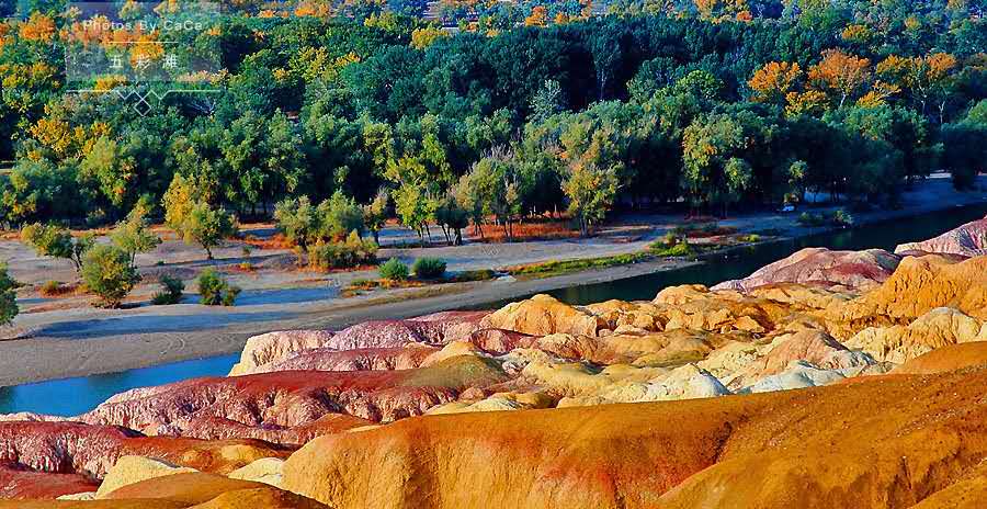 【五彩灘】(游覽時(shí)間60分鐘)五彩灘位于新疆北部,五彩灘又名五彩河岸,我國唯一的一條注入北冰洋的河流。五彩灘地貌特殊, 山勢(shì)起伏、顏色多變,其是由激猛的流河侵蝕切割以及狂風(fēng)侵蝕作用而共同形成。由于河岸巖層間抗風(fēng)化能力的強(qiáng)弱程度不一而形成了參差不齊的輪廓,這里的巖石顏色多變,且在陽光照射下,巖石的色彩以紅色為主,間以綠、紫、黃、白、黑及過渡色彩,色彩斑斕、嬌艷嫵媚,因此被稱作“五彩河岸”、是“新疆最美的雅丹地貌”。