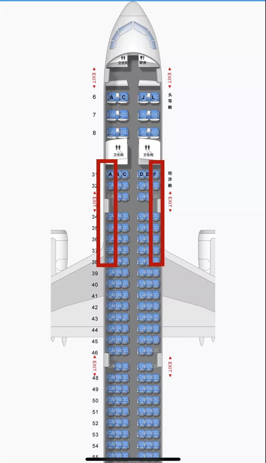 窄體客機(jī)主要有波音737、757、空客A320,這類(lèi)飛機(jī)A、F為靠窗位置。