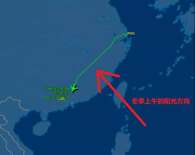 給大家舉個(gè)例子,比如說(shuō),你上午從北京飛往深圳,飛機(jī)是向南飛,而太陽(yáng)正好在東邊,那么你就應(yīng)該選擇飛機(jī)右側(cè)的窗口,避免逆光。