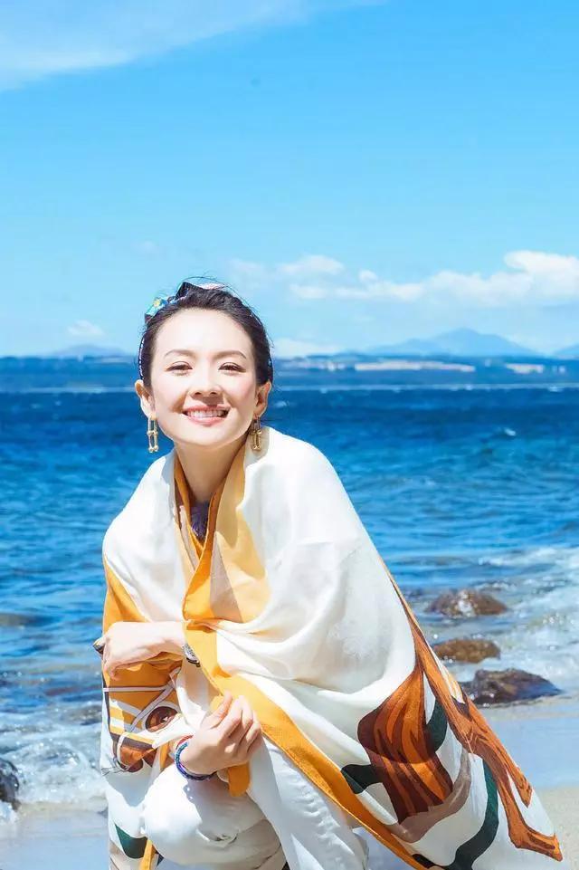 媽媽們拍照總喜歡拿著絲巾去花叢、樹叢中,也不管什么構(gòu)圖,導(dǎo)致整個畫面非常的凌亂。再來看看章子怡,人家也是選擇了海邊,但是卻避免了人多的地方,整個背景就是藍色的天空和大海,鏡頭特寫,主體明確。
