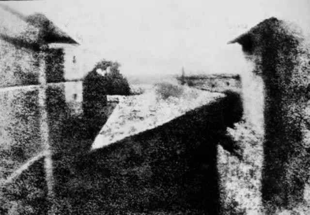 這張照片使用的是照相制版法,在一只小盒子里面放一片白蠟板,上面有感光鹽涂層,附有鏡頭。涅普斯從他在索恩河畔沙隆的鄉(xiāng)間住所的樓上窗口,拍攝了他的第一張照片,曝光時間約為 8 小時。