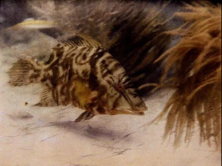 1926 年,國家地理攝影師查爾斯·馬?。–harles Martin)和植物學(xué)家威廉·朗利(William Longley)拍下了第一張水下彩色照片。這對搭檔將相機裝入了防水的盒子中,使用鎂離子發(fā)電的閃光燈,拍下了圖中這條長棘毛唇隆頭魚。