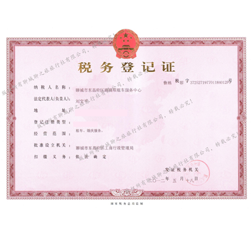路路順租車服務(wù)中心稅務(wù)登記證 |