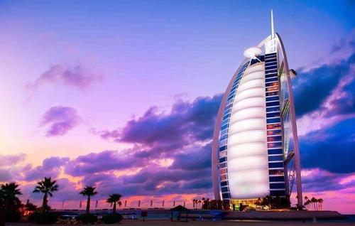 后乘車前往朱美拉公共沙灘,車觀【朱美拉清真寺】,【迪拜酋長(zhǎng)皇宮】(外觀),外觀世界最著名的【七星級(jí)帆船酒店】,奢華的代名詞;