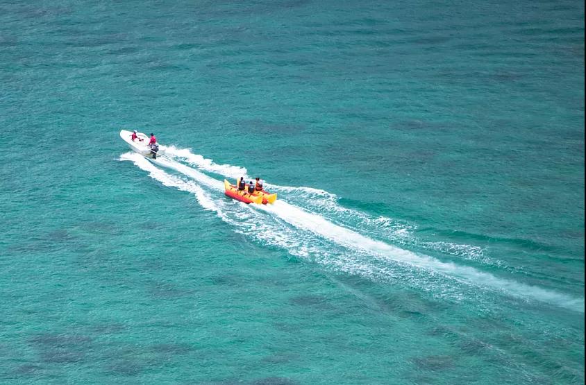 站在沙灘上,浩渺而又純凈的藍(lán)不斷涌來,依深淺的不同呈現(xiàn)出黃、綠、淺藍(lán)、深藍(lán)幾種顏色,仿佛畫上的風(fēng)景,島上可參加潛水等海上娛樂項(xiàng)目(海上娛樂項(xiàng)目費(fèi)用不含)或游泳拍照;