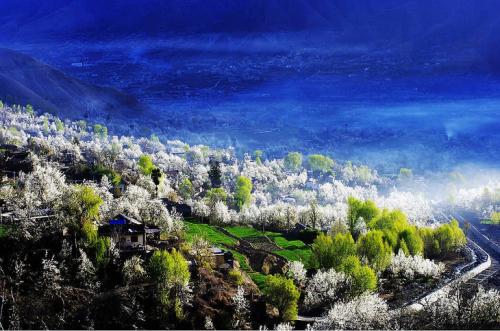 4、前往“中國雪梨之鄉(xiāng)”美譽的金川,萬物復蘇的初春三月,正值金川成千上萬棵梨樹花期,雪白色的梨花競相開放,一片片、一層層的鋪散開來,漫山遍野的白色花海中夾雜零星新綠,空氣中氤氳著梨花清香,眼是天堂,身亦是天堂。