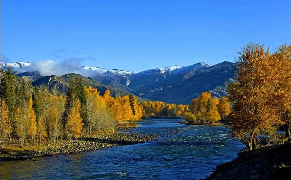 到達(dá)可可托海鎮(zhèn)后享用午餐游覽位于額爾齊斯大峽谷的【可可托海國(guó)家地質(zhì)公園】(含區(qū)間車(chē))(游覽約120分鐘)可可托海哈薩克語(yǔ)意思為"綠色的叢林"。蒙古語(yǔ)意為"藍(lán)色的河灣"。正如其名,可可托海的水是藍(lán)色的和綠色的,這里是全國(guó)第二寒極。乘坐區(qū)間車(chē)途中參觀【白樺林】,野生樺樹(shù)林生長(zhǎng)在額爾齊斯河凸岸河灣上,嫵媚婆娑,柔軟的枝條舒緩下垂,伴著清風(fēng)纖纖舞動(dòng),綽約若處子,曼妙無(wú)比;【神鐘山】,又稱阿米爾薩拉峰,如一口巨大座鐘立于額爾濟(jì)斯河畔,是當(dāng)?shù)卦∶竦木駡D騰。