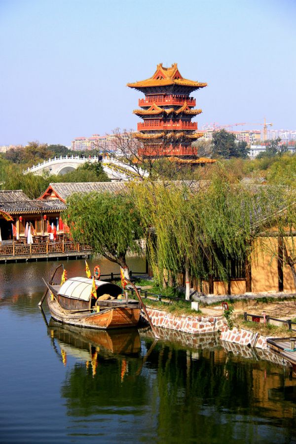 走進質(zhì)樸又輕緩的北宋時代的小宋城,這里以木質(zhì)仿古建筑為主,回廊流水,亭臺樓榭。