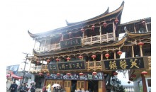 上午:游覽曾被新西蘭著名作家路易艾黎稱贊為中國最美麗的小城--【鳳凰古城】,一座青山抱古城,一灣沱水繞城過,一條紅紅石板街,一排小巧吊腳樓,一道風雨古城墻,一座滄桑老城堡,一個奇絕奇梁洞,一座雄偉古石橋,一群聞名世界……一切,都美到極致,因此,才有了沈從文一曲《邊城》,將他魂夢牽系的故土描繪得如詩如畫、如夢如歌、蕩氣回腸。繼續(xù)沱江邊漫步,沿青石板路步行至民族一條街的明清古石板街-東正街,這條古街應(yīng)證了千年厚重的歷史文化沉淀,沿街有苗家扎染、蠟染、銀飾、挑花、刺繡等多種多樣的民間工藝品以及眾多風味小吃;參觀有代表性的最湘西手工藝街、熊氏蠟染鋪、陳家老號姜糖、阿牛血粑鴨、吳花花的扎染鋪、王春的“苗家小鋪”等眾多工藝美食店鋪;欣賞沈從文筆下的沱江吊腳樓,遠眺畫家黃永玉奪翠樓……