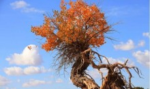 胡楊有“生而一千年不死,死而一千年不倒,倒而一千年不朽”的說法,被世人稱為英雄樹,如果說我們昨日見到的怪樹林是胡楊林死后化作的雕塑,那么我們今日看到的額濟納胡楊林便是正當(dāng)壯年生氣彭發(fā)的藝術(shù)品。千姿百態(tài)的胡楊遍布在沙漠中,大家可以漫步于輝煌的金秋胡楊林,用鏡頭記錄這中國最美的秋景;或者去找尋領(lǐng)隊所說的一樹三葉的神奇景象——“幼樹葉如針?biāo)屏肌妖g樹葉酷似白樺、老年樹葉橢圓”,胡楊、藍天、來自大漠腹地的風(fēng)聲襲來之時,胡楊林便泛起黃澄澄的層層漣漪,顯盡大西北秋冬那紅盛翠減的獨有風(fēng)情。張藝謀的大片《英雄》中張曼玉與章子怡身著紅衣在這漫天的金色胡楊中打斗,踱步胡楊林,身臨其境,感受大熒屏收錄過的景色之美。