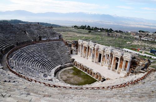酒店享用早餐,乘車前往著名的棉花堡以及希拉波利斯古城遺址(參觀不少于約2小時(shí))棉花堡此處的地下溫泉水不斷從地底涌出,含有豐富礦物質(zhì)如石灰等,經(jīng)過長(zhǎng)年累月,石灰質(zhì)聚結(jié)而形成棉花狀之巖石,層層疊疊,構(gòu)成自然壯觀的巖石群和水池,您可在泉水內(nèi)暢游或享受泉水涌出的天然水力按摩,據(jù)說(shuō)有治療高血壓,風(fēng)濕癥和皮膚病的效用;
