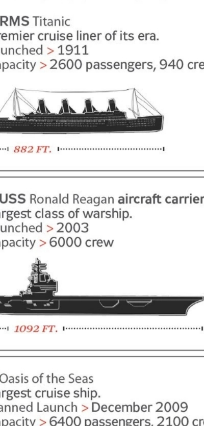 目前世界上最大的郵輪(客船),綠洲系列誕生時(shí),做對(duì)比的美國(guó)里根號(hào)航空母艦,還是泰坦尼克號(hào)。