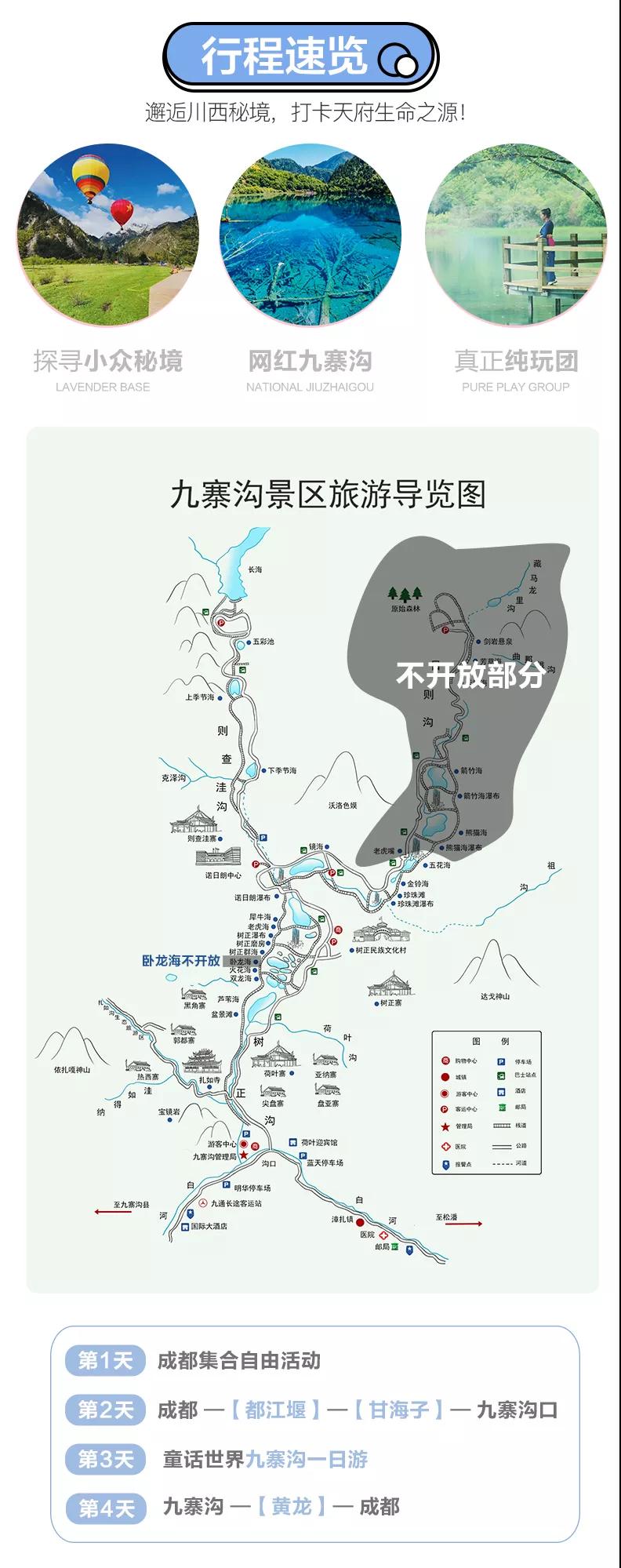 4、九寨溝景區(qū)實(shí)行分區(qū)域開(kāi)放,開(kāi)放區(qū)域?yàn)闇峡诮?jīng)諾日朗瀑布至長(zhǎng)海,扎如溝的扎如寺及日則溝的鏡海;其中,長(zhǎng)海、五彩池、鏡海、諾日朗瀑布、樹(shù)正群海、雙龍海瀑布、扎如寺等景觀原則上為步行游覽區(qū),具體游覽方式請(qǐng)聽(tīng)從隨車講解員安排。