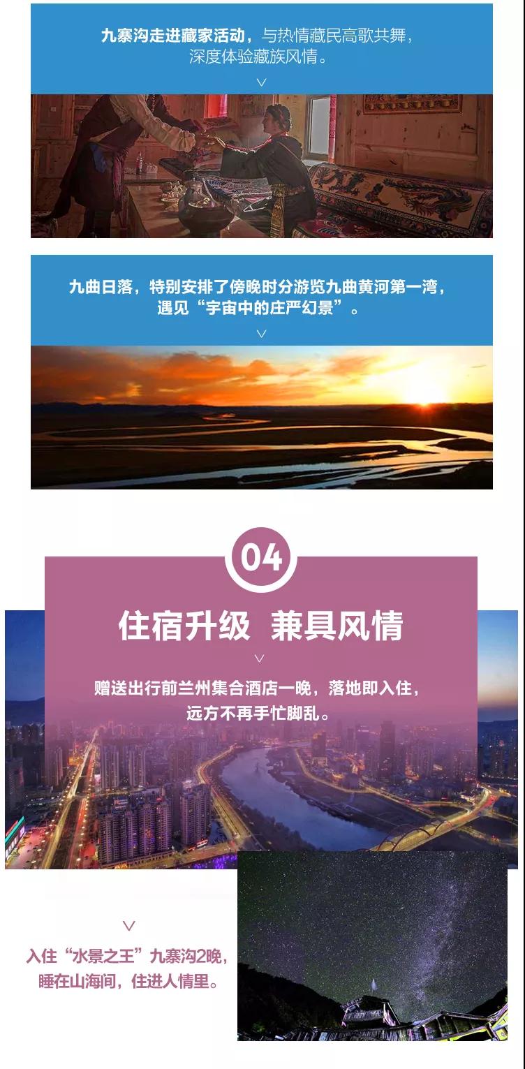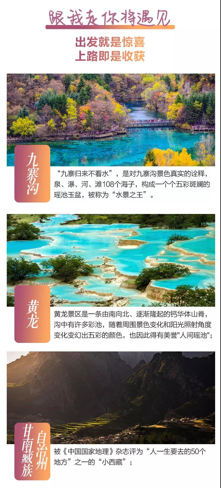 4、九寨溝景區(qū)實(shí)行分區(qū)域開放,開放區(qū)域?yàn)闇峡诮?jīng)諾日朗瀑布至長海,扎如溝的扎如寺及日則溝的鏡海;其中,長海、五彩池、鏡海、諾日朗瀑布、樹正群海、雙龍海瀑布、扎如寺等景觀原則上為步行游覽區(qū),具體游覽方式請聽從隨車講解員安排;