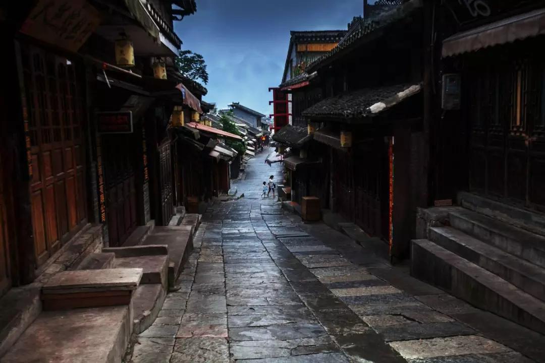 傍晚,古鎮(zhèn)靜下來,吃一頓古鎮(zhèn)鹵豬腳,品一碗糕粑稀飯,在褪去日間的繁雜的幽靜石板路上,走走停停,享受這一刻的寧靜。