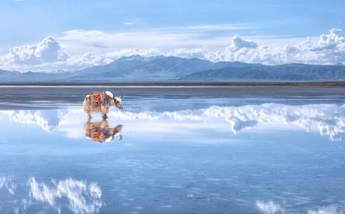 【茶卡鹽湖】被國家旅游地理雜志評為“人一生必去的55個地方”之一,這里的采鹽歷史非常悠久,湖水含鹽量很大,湖面上會自然結(jié)晶,一片純白。結(jié)晶之上是一層薄薄的露水,將天空、云朵和對岸的山都倒映在白色的湖里,非常漂亮,所以也被稱為“中國的天空之境”。大家可以乘坐景區(qū)內(nèi)的小火車前往景區(qū)深處游玩,如果不乘坐小火車,沿著鐵軌向湖深處散散步拍拍照片也是非常愜意的。