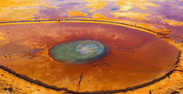 隨后我們前往阿拉爾草原深處去探索一方汩汩噴涌了上千年的地?zé)釃娙?strong>“惡魔之眼”艾肯泉】。“艾肯”在蒙語中意為“可怕”,而“艾肯泉”在蒙語中又意為“源頭”,因其湖水成分艾肯泉周圍寸草不生且形成了一個紅褐色的圓形,正中央便是汩汩而出的泉水,這便形成了一個巨大的“眼睛”,被人稱為“大地之眼”。從空中俯瞰航拍,這巨大的眼睛脈絡(luò)清晰,栩栩如生,在它周圍點綴著許多青色的小泉眼,神秘而震撼;除了其令人驚奇的血色眼睛造型,艾肯泉還有神奇的“喊泉”屬性,據(jù)說站在岸邊朝它大喊,或者是在岸邊跺跺腳,噴泉口的水流量就會加大,會噴涌得更高。