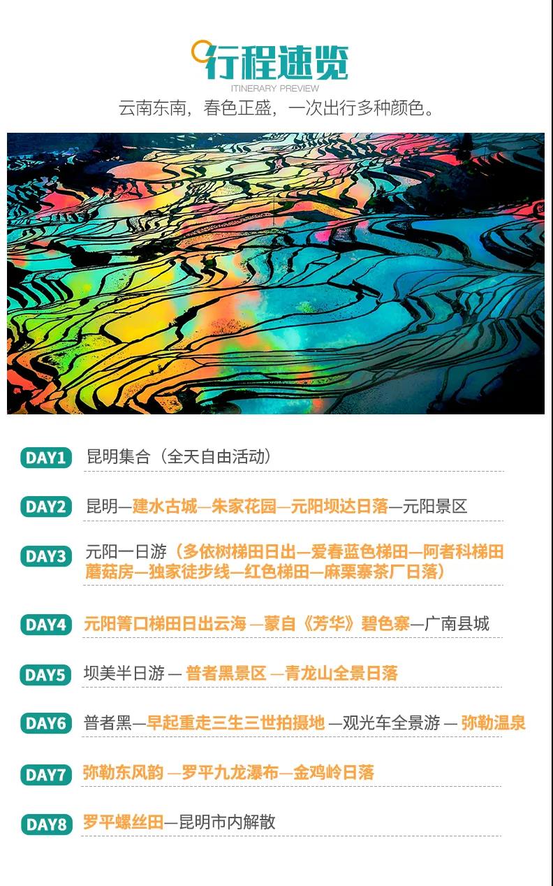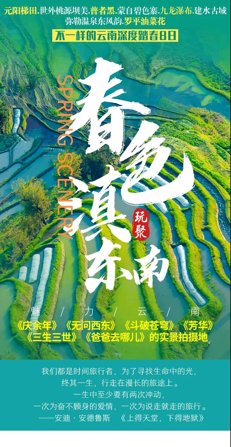 元陽梯田+羅平油菜花+世外桃源壩美+普者黑+蒙自碧色寨+彌勒溫泉+東風(fēng)韻+九龍瀑布+建水古城云南踏春
