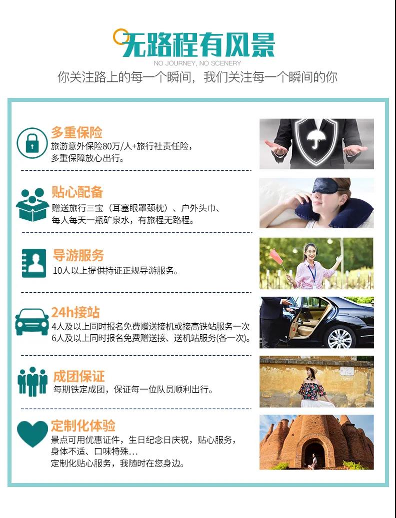 (6)4人及以上免費(fèi)贈送接機(jī)或接高鐵站服務(wù)(單程一趟);6人及以上同時報名該線路,免費(fèi)贈送接、送機(jī)站服務(wù)(各一趟)。