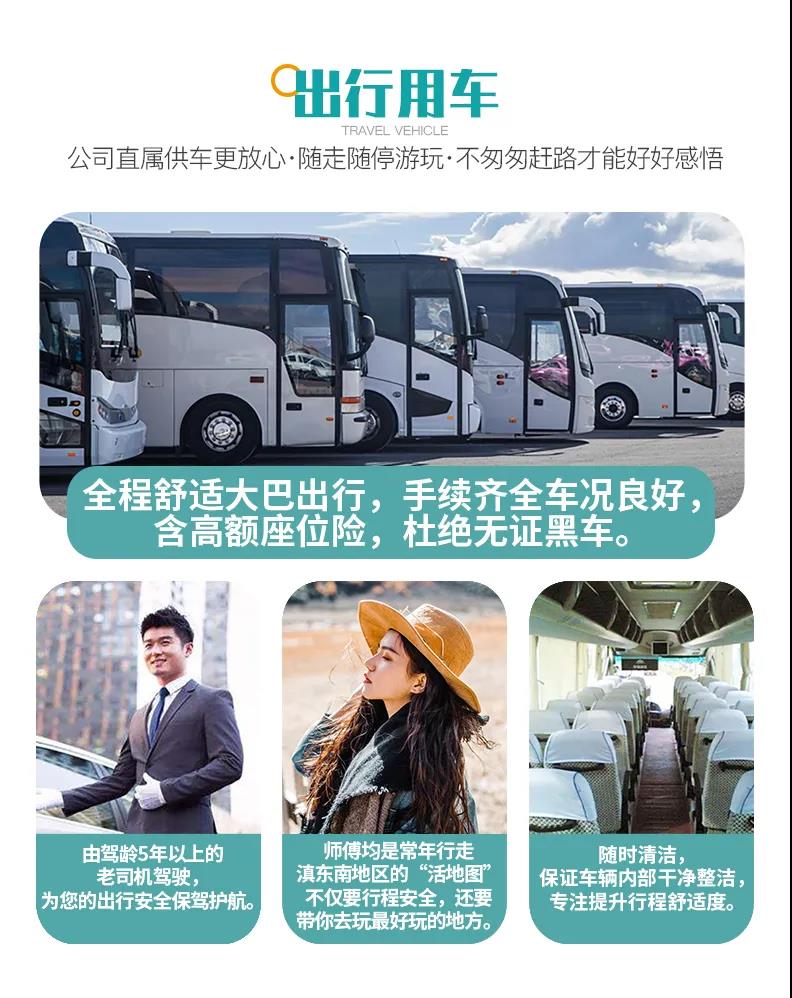 接站服務(wù):3人及以上同時報名同一航班/車次,贈送昆明市區(qū)接機(jī)/接火車服務(wù)一次。接機(jī)/接火車的工作人員會在您出發(fā)日期前一天21:30之前向您推送消息并與您聯(lián)系,如果超過時間沒有接到任何通知,請及時與導(dǎo)游或報名處聯(lián)系。(節(jié)假日用車人數(shù)較多情況下客人等待時間可能會延長)
