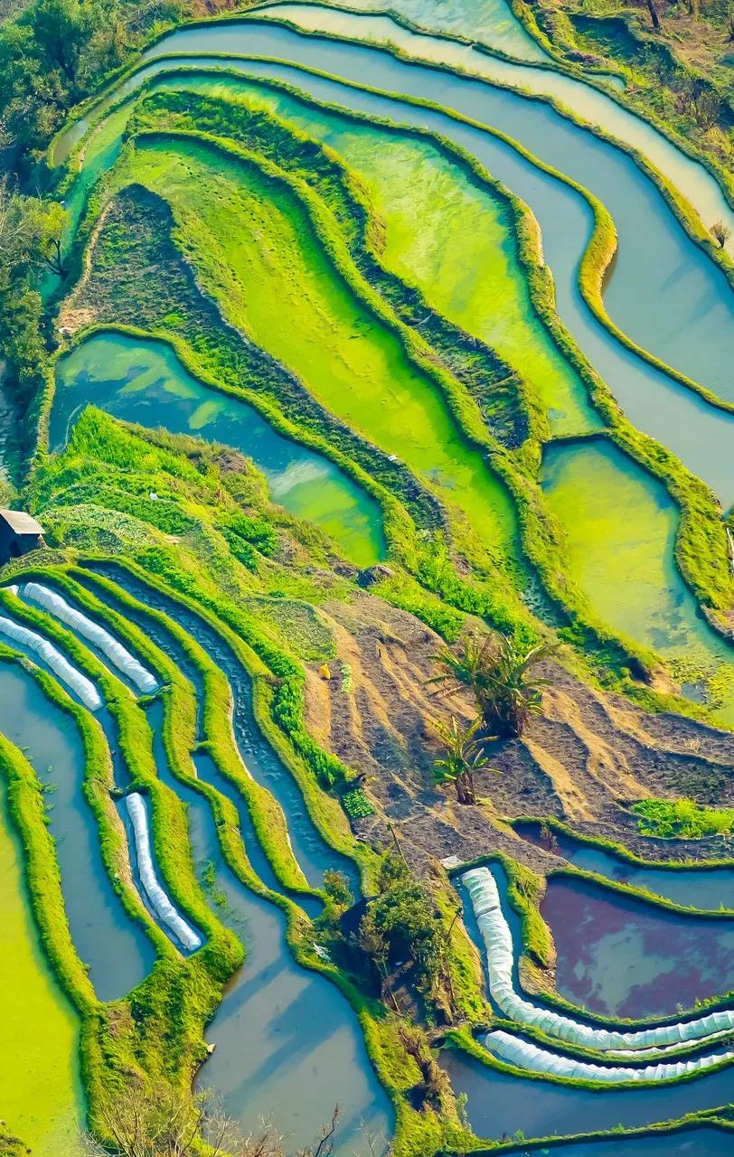 早上好!昨天看了壩達(dá)梯田的夕陽晚照,今天我們就去日出最佳拍攝地——【多依樹梯田】,當(dāng)朝陽透過云層射出光芒,縷縷陽光會穿過薄薄晨霧架起彩色的橋梁,晨霧夾雜著繽紛的光,一切美的如夢似幻;隨后去往【愛春】拍攝藍(lán)色梯田,這個村莊的梯田在灌水后就會呈現(xiàn)一片如天空一般蔚藍(lán)的藍(lán)色,也因此得名藍(lán)色梯田。