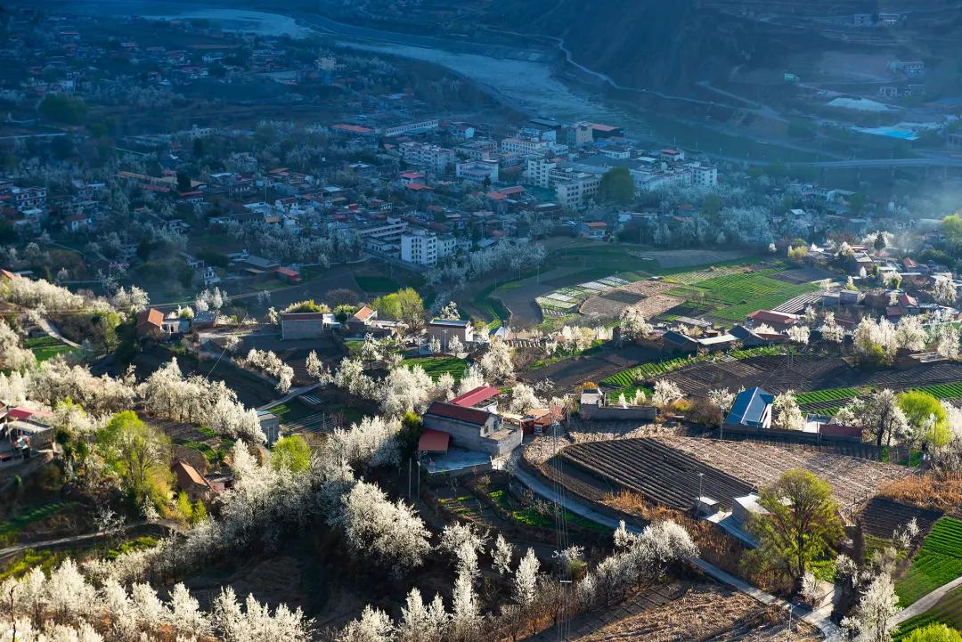 我們的團期是金川最好的時節(jié),萬物復(fù)蘇的初春三月,正值金川成千上萬棵梨樹花期,雪白色的梨花競相開放,一片片、一層層的鋪散開來,漫山遍野的白色花海中夾雜零星新綠,空氣中氤氳著梨花清香,眼是天堂,身亦是天堂。