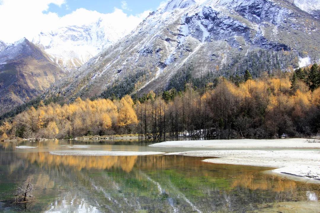 有“四姑娘山后花園”美譽的畢棚溝(不含景區(qū)觀光車60元/人-上行游客中心-龍王海/下行娜姆湖酒店-游客中心),溝內(nèi)有原始森林、絢麗多彩的植被、雪山溫泉,景觀豐富,一年四季各有各的美。初春時節(jié)斑駁著枯色的山林正漸漸蘇醒,枝丫生出新的綠色希望,然后就匯成一片嫩綠的海洋;溪流才開始解凍,半冰半水潺潺流動,垂卷而下的百米瀑布如白砂裹雪,這是畢棚溝一年之中顏色最為清冽的時節(jié);沿原始森林中的蜒曲的山路前行,兩旁塞滿了楓樹、槭樹、鵝掌松、落葉松,遠眺藍天高山,奇特的萬年冰川,細細品味這個“小九寨”的雋氣與柔美。
