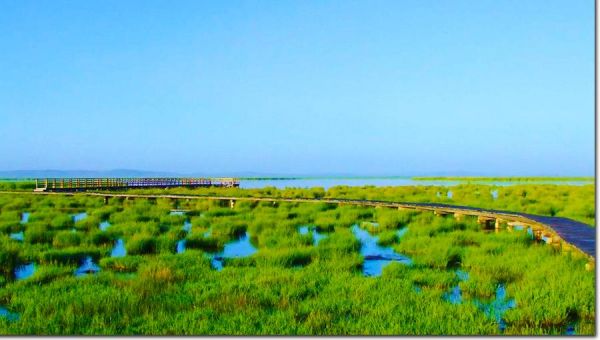 湖水透徹的藍(lán),是那種無(wú)法形容的純凈;繾綣在水天之間的云彩,有著魔力般妖艷。令人想越過(guò)棧道一直走到湖中心去,或許那里,會(huì)有更大的幸福?;ê潜姸嘁吧w禽的主要棲息地,湖面上游弋著赤麻鴨、灰雁、白骨頂、天鵝等珍稀動(dòng)物,觀景的棧橋延伸到了湖里,信步走到小亭之上,看碧波蕩漾,聽(tīng)聲聲鳥鳴,獨(dú)自去體味那種浩淼與無(wú)垠。天鵝、黑頸鶴、丹頂鶴、藏鴛鴦、燕鷗、禿鷲、老鷹、旱獺、狐貍、草原鼠兔......等眾多的高寒濕地所特有的野生動(dòng)物在這自由生長(zhǎng)和生活。