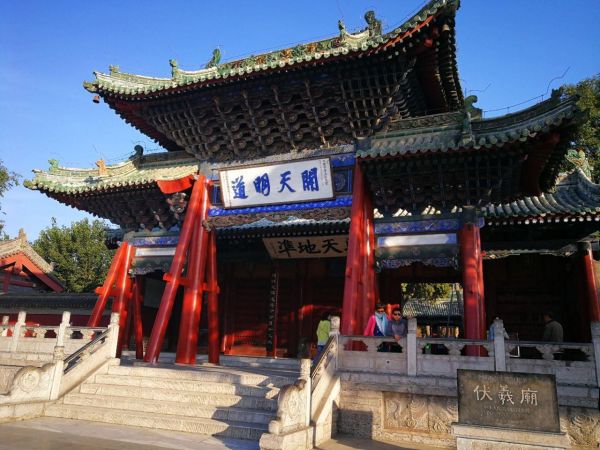 中國(guó)西北地區(qū)著名古建筑群之一,原名太昊宮,俗稱人宗廟,地址位于甘肅省天水市秦州區(qū)西關(guān)伏羲路。一九六三年被甘肅省人民政府公布為甘肅省重點(diǎn)文物保護(hù)單位,現(xiàn)為全國(guó)重點(diǎn)文物保護(hù)單位。伏羲廟坐北朝南,臨街而建,院落重重相套,四進(jìn)四院,宏闊幽深。廟內(nèi)古建筑包括戲樓、牌坊、大門、儀門、先天殿、太極殿、鐘樓、鼓樓、來(lái)鶴廳共10座;新建筑有朝房、碑廊、展覽廳等6座。新舊建筑共計(jì)76間。整個(gè)建筑群包括牌坊、大門、儀門、先天殿、太極殿沿縱軸線依次排列,層層推進(jìn),莊嚴(yán)雄偉。