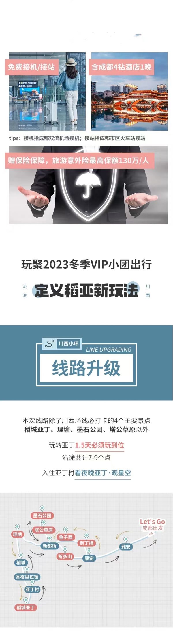溫馨提示:第一天入住地點默認為新都橋鎮(zhèn),若因交通狀況不允許或者旺季房源緊張,可能會調(diào)整至磨西古鎮(zhèn)入住初到高原,建議緩步行走,適應高原氣候,尊重少數(shù)民族風俗習慣。