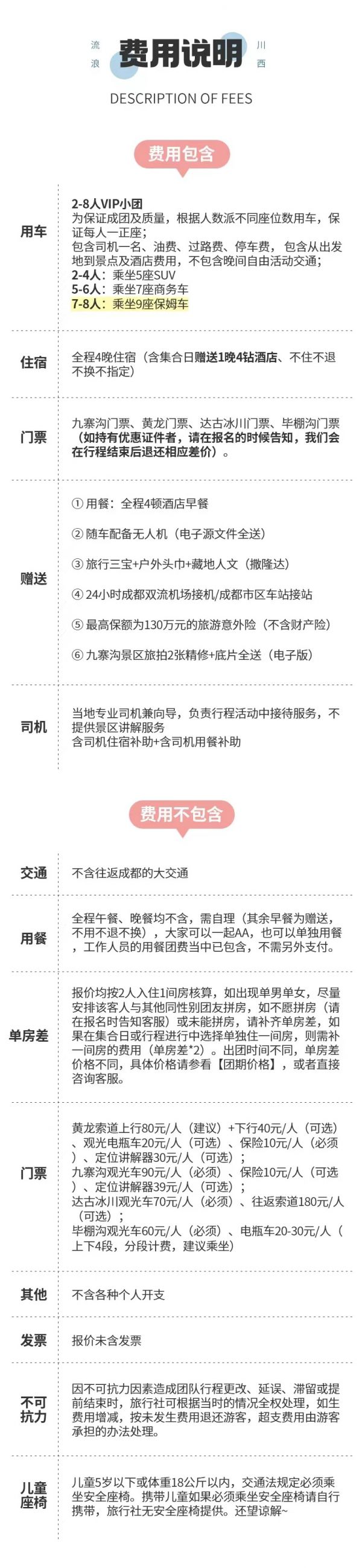 (6)成都至黃龍的路程較遠,山路較多,如您要暈車,請務(wù)必攜帶暈車藥。