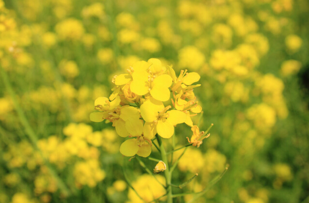 人在花叢中。路邊、田野里,到處到處都有油菜花的身影。仔細(xì)看,油菜花形態(tài)各異,有的剛剛開放,金黃的花瓣閃閃發(fā)亮;有的早已開放,花瓣落了,花蕊有點(diǎn)青青;還有的含苞待放,鼓鼓的花苞仿佛要破裂似的。春姑娘用手把那金黃色的海洋掀起一陣陣波浪,油菜花此起彼伏,在這世間萬物復(fù)蘇的時(shí)候,百花爭艷,不太引人注意的油菜花也爭先恐后地開放了,地里五彩繽紛的野花點(diǎn)綴著黃色的寶石,一片生機(jī)勃勃的景象。