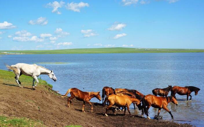 早餐后一路草原風前往我國北方第一大湖——【呼倫湖】呼倫湖方圓八百里,碧波蕩漾,湖中盛產(chǎn)秀麗白蝦、白魚等。午餐品嘗呼倫湖特色風味魚宴,餐后湖邊漫步,靜靜觀賞湖天一線美景。