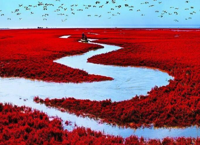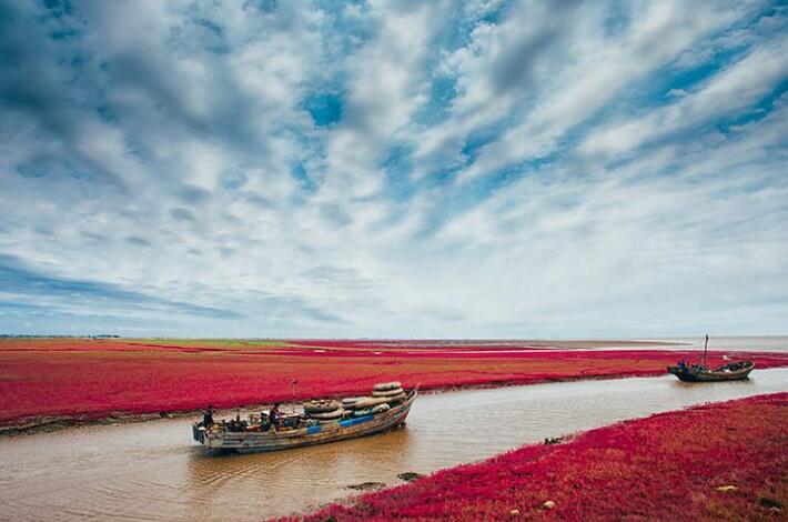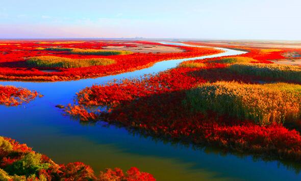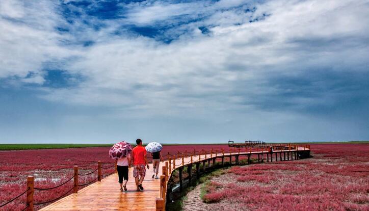 游覽后午餐,乘車前往我國(guó)北方最大的濱海濕地城市—盤錦市,抵達(dá)盤錦后前往游覽【盤錦紅海灘廊道】(游覽約3小時(shí)),紅海灘地處遼河三角洲濕地,位于盤錦市西南海濱,是由大片紅色的堿蓬草形成的著名濕地,紅海灘國(guó)家風(fēng)景廊道是紅海灘面積最大的景區(qū),在這里你可以漫步于木棧道、看紅如熾焰的堿蓬草在海岸線上無限延伸,而紅海灘遠(yuǎn)處的油井在夕陽下更是一副迷人的畫卷,秋天來此還能看到金黃色的稻田與紅海灘相呼應(yīng),以及成群的候鳥展翅于灘涂的深處,游覽后晚餐,晚餐品嘗盤錦稻香河蟹宴,晚餐后入住酒店休息。