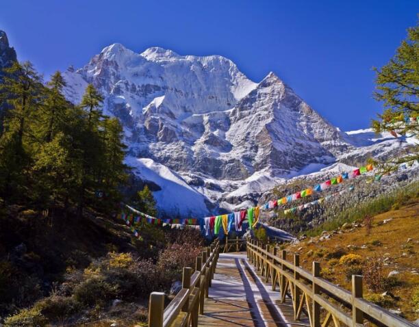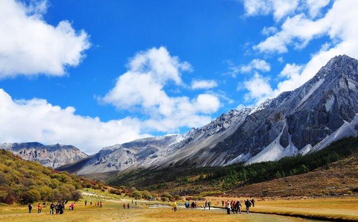 當(dāng)天游覽線路參考:日瓦鄉(xiāng)~景區(qū)觀光車34km~亞丁村龍同壩~景區(qū)觀光車3.4km~扎灌崩~徒步0.5km~沖古寺~電瓶車6.7km~絡(luò)絨牛場(chǎng)(三怙主雪山)~騎馬5.3km~牛奶海、五色海。(原路返回亞丁村龍同壩)