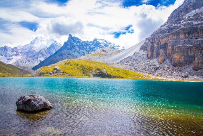 早餐后可以繼續(xù)進(jìn)入景區(qū)觀賞【仙乃日神山】下的圣湖【卓瑪拉措】又名珍珠海(二進(jìn)溝乘坐觀光車60元費(fèi)用自理)。到達(dá)景區(qū)后步行到達(dá)沿著【沖古寺】仰望仙乃日神山而上(往返約3公里步行約2小時(shí))欣賞沿途的美景,遠(yuǎn)眺仙乃日神山(海拔6032米,慈目注視腳下人間仙境,夏天雪線下瀑布成群連片,氣勢(shì)宏偉壯觀,山腳下分布著由草地、森林、湖泊完美組合的景致,美不勝收。仙乃日,藏語(yǔ)意為“觀世音菩薩”,是稻城三座神山的北峰。是三座神山中海拔最高的一座。其狀巍峨,象菩薩端坐在蓮花臺(tái)上,渾身浸透高貴氣質(zhì)的“仙乃日”,頂峰終年積雪不化,其山形酷似一個(gè)身體后仰的大佛,傲然端坐在蓮花座里,她的懷中抱著一個(gè)巨大的佛塔,陽(yáng)光照在仙乃日神山上會(huì)金光燦燦。一步一步來(lái)到美如仙境般的珍珠海,藏語(yǔ)中稱珍珠海譯為“卓瑪拉措”密林中的珍珠海如一顆鑲嵌在蓮花寶座上的綠寶石,碧波蕩漾,雪山和樹(shù)木的倒影一起倒映在碧綠的珍珠海中。組成一幅仙境般的圖畫(huà),不是人間,勝似人間。